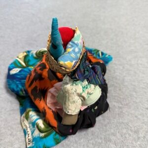 Handmade Folk Art Doll Tropical Print Patchwork Skirt Straw Hat