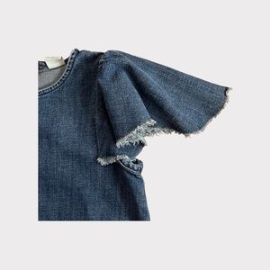 Stem Raw Hem Shoulder Sleeve Denim Dress