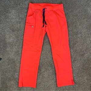 FIGS Scrub Set Fiery Coral Kade Cargo Pants Medium Catarina One Pocket Top Large