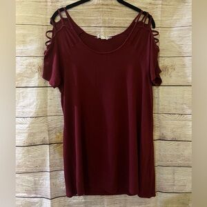 Stylish maroon tee with cold shoulder design. Perfect for casual outings.