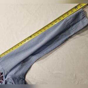 Embroidered red and navy blue design.