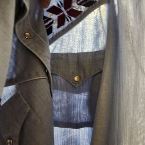 Pearly snap closure. Two front pockets with snap closure.