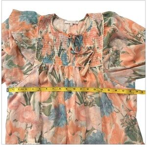 Olivaceous Floral Boho Coastal Smocked Mini Dress -Peach & Blue - Size Small EUC