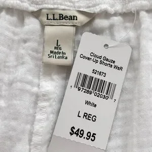 L.L. BEAN White Cloud Gauze High Rise Cover-Up Shorts--NWT--L