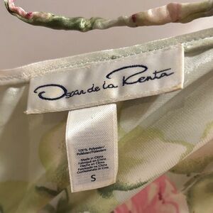 Oscar de la Renta Floral Satin Chemise - Green and Pink