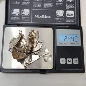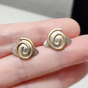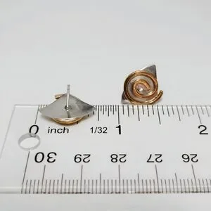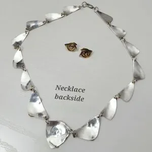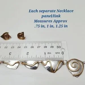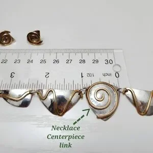 Vintage Sterling Silver Bronze Swirl Hand wrought Modernist Necklace Earring Set