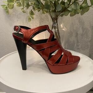 Donald J Pliner Cleva Gladiator Platform Heel Rust Red Patent 8 Excellent