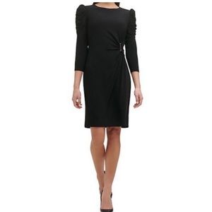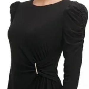Tommy Hilfiger Black Ruched Waist Puff-Sleeve Midi Dress