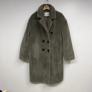 Rebecca Minkoff Wool Double Breast SZ LARGE Oversized Faux Fur Teddy Coat Green