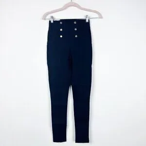 NWT ZARA High Rise Legging Embellished Gold Buttons Black XS #A1279