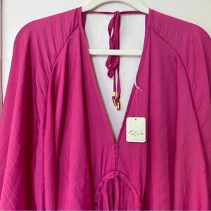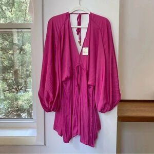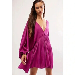 New Free People Arzel Long Sleeve Mini Dress in Magenta Haze Hot Pink XS