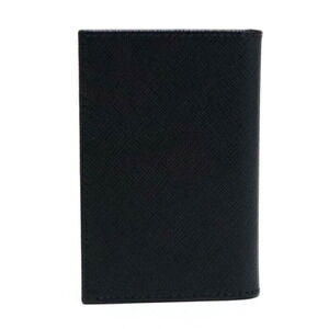 Prada Saffiano Leather Card Wallet Pass Business Holder Nero Black Gray