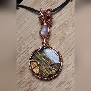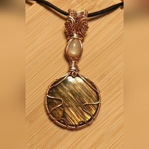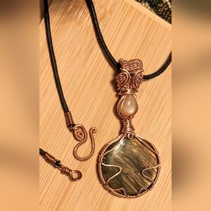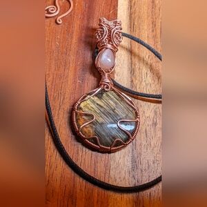 Iridescent Gemstone Pendant Necklace Artisan Copper Wire Wrap Design