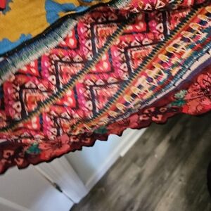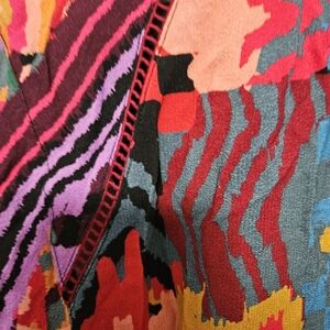 John Mark Woman’s Oversized Small Top, Mix print with colorful embroidery Large