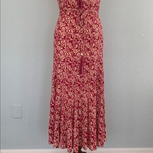 This bohemian-inspired, vibrant floral maxi features a cinched elastic waist, tiered skirt, fluttery sleeves! Made of lightweight, breathable rayon, this flowy dress is ideal for vacations, summer parties or casual, romantic everyday wear.