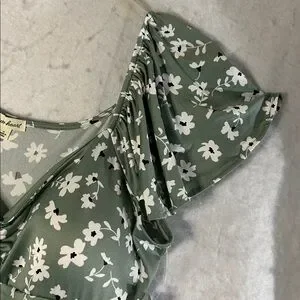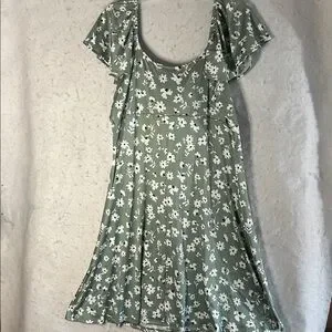 Derek Heart Sage Green Floral Flutter Sleeve Empire Waist Street Length Dress 1X