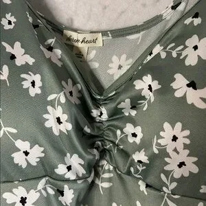 Float through spring and summer in this effortlessly feminine Derek Heart floral dress, new with tags. Designed with a flattering empire waist & a flowy, drapey silhouette, this sage green frock features a chic black and white floral print that feels both romantic & modern.