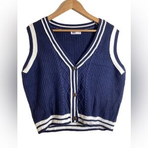 SO Chunky Cable Knit Preppy Tennis Style Button Up Sweater Vest