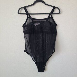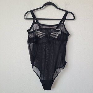 Torrid Diamante Mesh Wire-Free Bodysuit Plus Size 1X Black