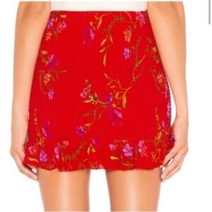 NEW Lovers + Friends Red Floral Smocked Mini Skirt with Ruffle Trim Size Small