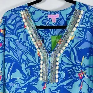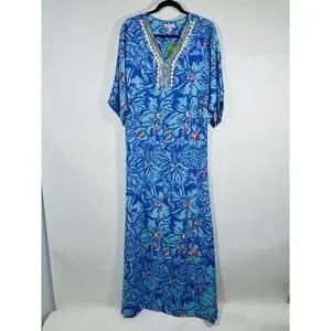 NWT Rare Lilly Pulitzer Wilda Maxi Caftan Iris Blue Mai Tai Size XS Missing Belt