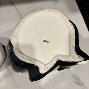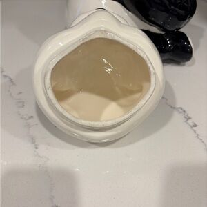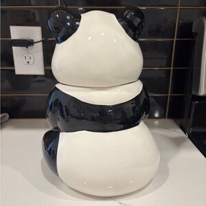 Charming panda ceramic cookie jar in classic black and white. Perfect for adding a playful touch to your kitchen decor.