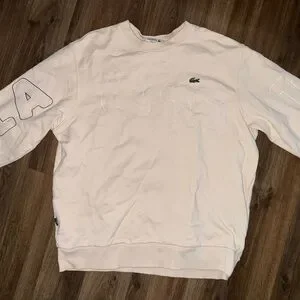 Stylish Lacoste crewneck in light cream. Features subtle logo detailing. Ideal for casual wear.