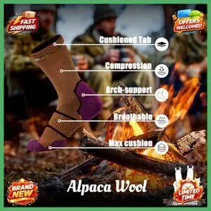 Alpaca Wool Thermal Compression Socks 2 Pairs Men Women Hiking Hunting