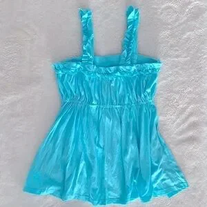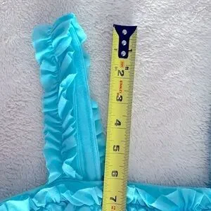 -Ruffled shoulder straps and neckline