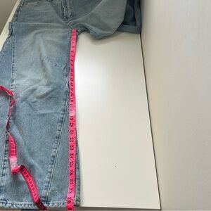 Features: Button fly closure, five-pocket design, puddled hemline, authentic rigid denim