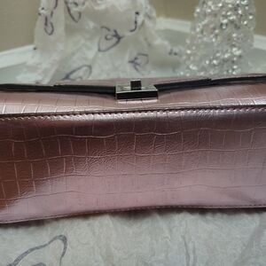 This chic pink faux croc-embossed handbag is perfect for any occasion. Its stylish design adds a touch of elegance to your outfit. Like new.