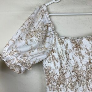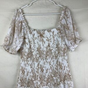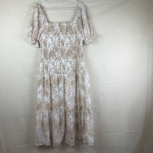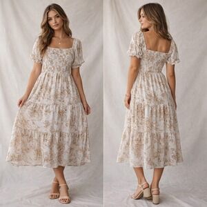 NWT SHE SKY Sz L Floral Smocked Midi Dress Puff Sleeve Boho Cottagecore Tiered