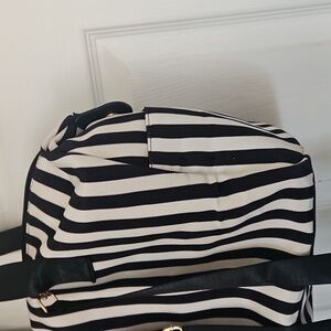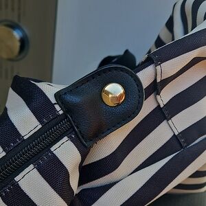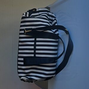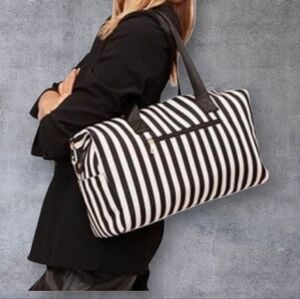 Alice + Olivia Duffle Bag Black and White Positano Stripe Weekender Tote