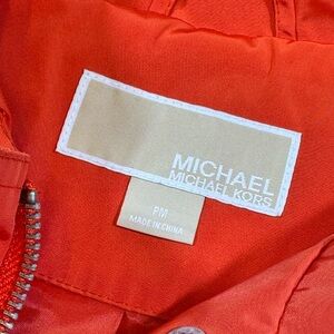 NWOT Michael Kor’s Women's Orange Hooded Rain Coat Jacket with silver details