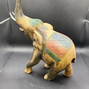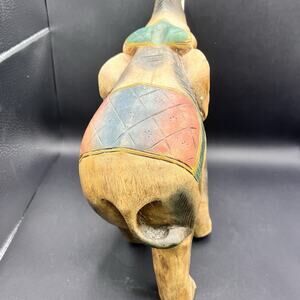 Vintage Hand Carved Wooden 12.5” Elephant Dk. Green & Red Blanket- UNMARKED