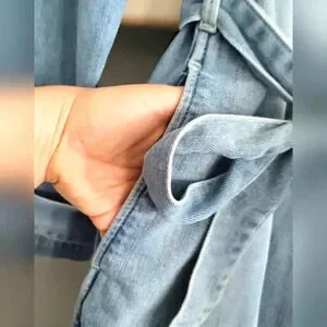Elevate your fashion game with this stunning FRAME Le Denim Trench Coat in Daphne, size medium. The cotton blend outer shell material with distressed accents and frayed hem adds a touch of uniqueness to your wardrobe. The coat comes with a tie and button closure, belted waistline, and collar for a classic trench coat look.