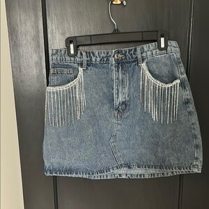SHEIN Blue Silver Embellished Mini Skirt Night Out