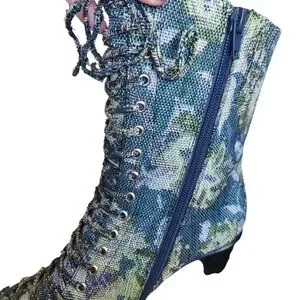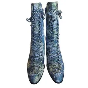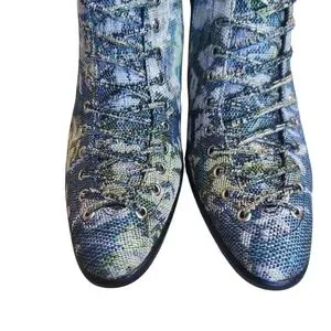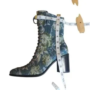Jeffrey Campbell Hastings Blue Green Floral Tapestry Victorian Boots Lace Up