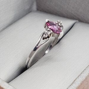 Genuine Marquise Amethyst & Round Zircon 925 Sterling Silver Dainty Ring