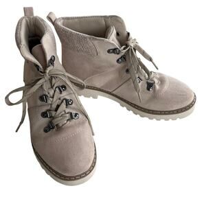 Cliffs by White Mountain Cream Beige Lace Up Hiking Boots Knit Cuff Size 7.5