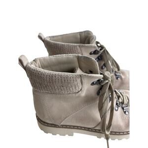 Cliffs by White Mountain Cream Beige Lace Up Hiking Boots with Chenille Knit Ankle Cuff Size 7.5