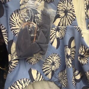 Stylish blue and white floral swim suit. Comes with matching belt.