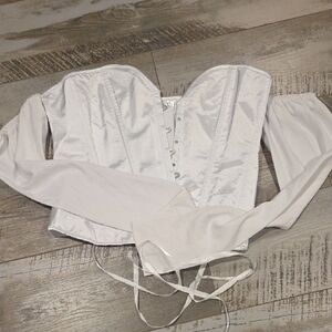 Elevate your style with this chic white off-shoulder corset bodysuit. Perfect for any occasion, its sleek design offers a flattering fit.