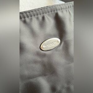 COACH Elegant black tote with silver logo plate. Ideal for daily use.