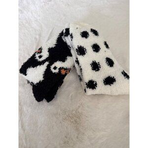 Stay Cozy Women's Black & white Fuzzy Crew Socks NEW size 4-10