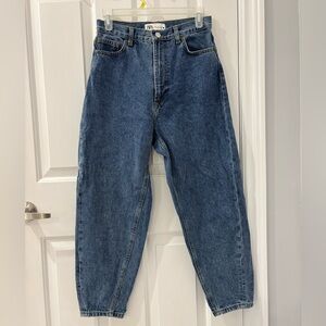 Zara Premium The Petit High Rise Balloon Barrel Leg Jeans Sz 4 Structured Taper