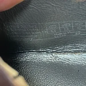 These are the same size and style but different production runs so the left shoe is a lighter brown color and has a different insole. They appear unworn.
