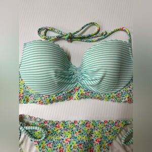 Victoria Secret Bikini Blue Stiped with Micro Floral Print Size Small