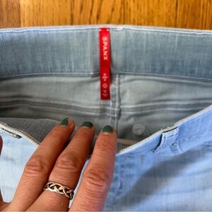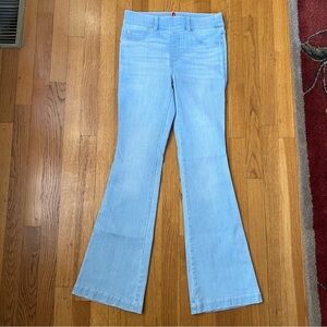 Details: light wash Spanx Flare Jeans. Sculpting stretchy fit with a high rise waist.