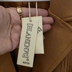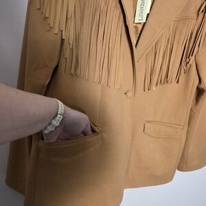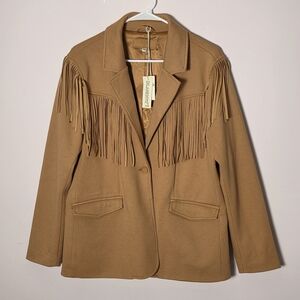 Blank NYC Suede-Like Western Fringe Blazer Jacket NWT Camel Brown Women’s L